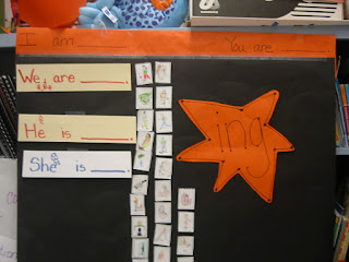 Happy Thursday! We started this poster around Thanksgiving and I was ready to put it away yesterday, but thought I would post it here first. It is our “ing” poster. The beginning level speakers and I are “ing”ing our way to fluency!