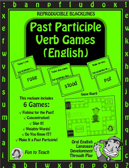 These past tense verb grammar/vocabulary game package includes 6 irregular past tense games and the printable black line masters to play them: